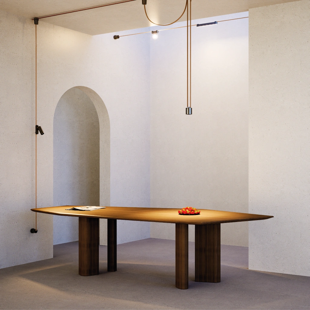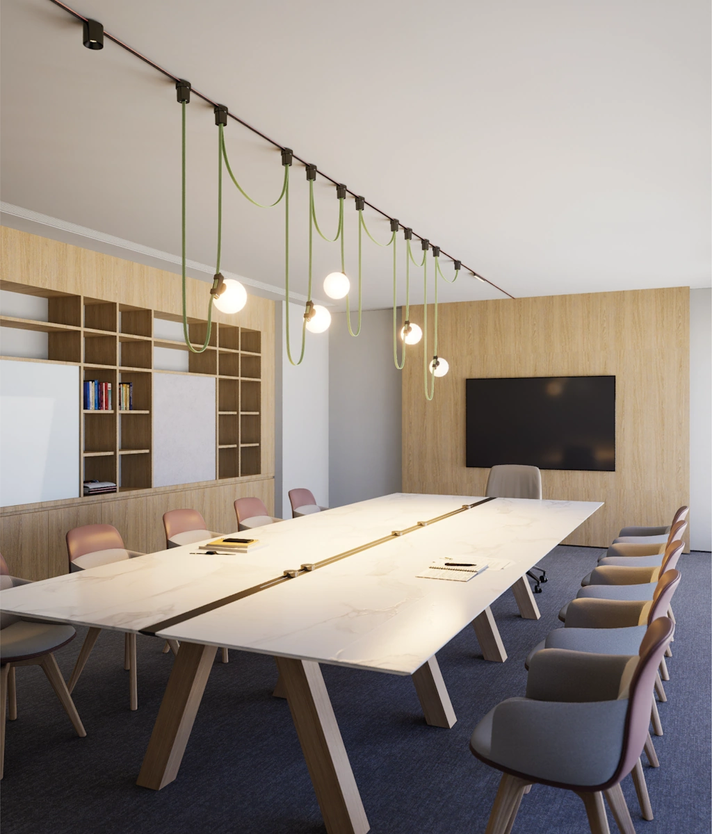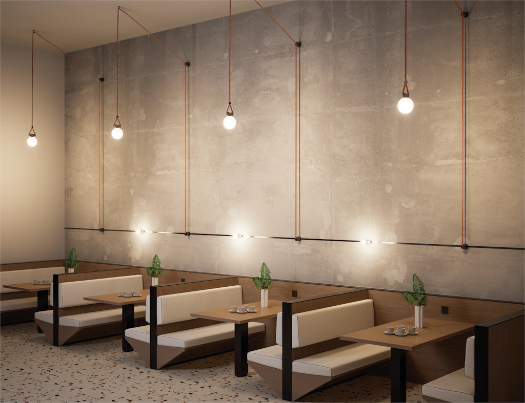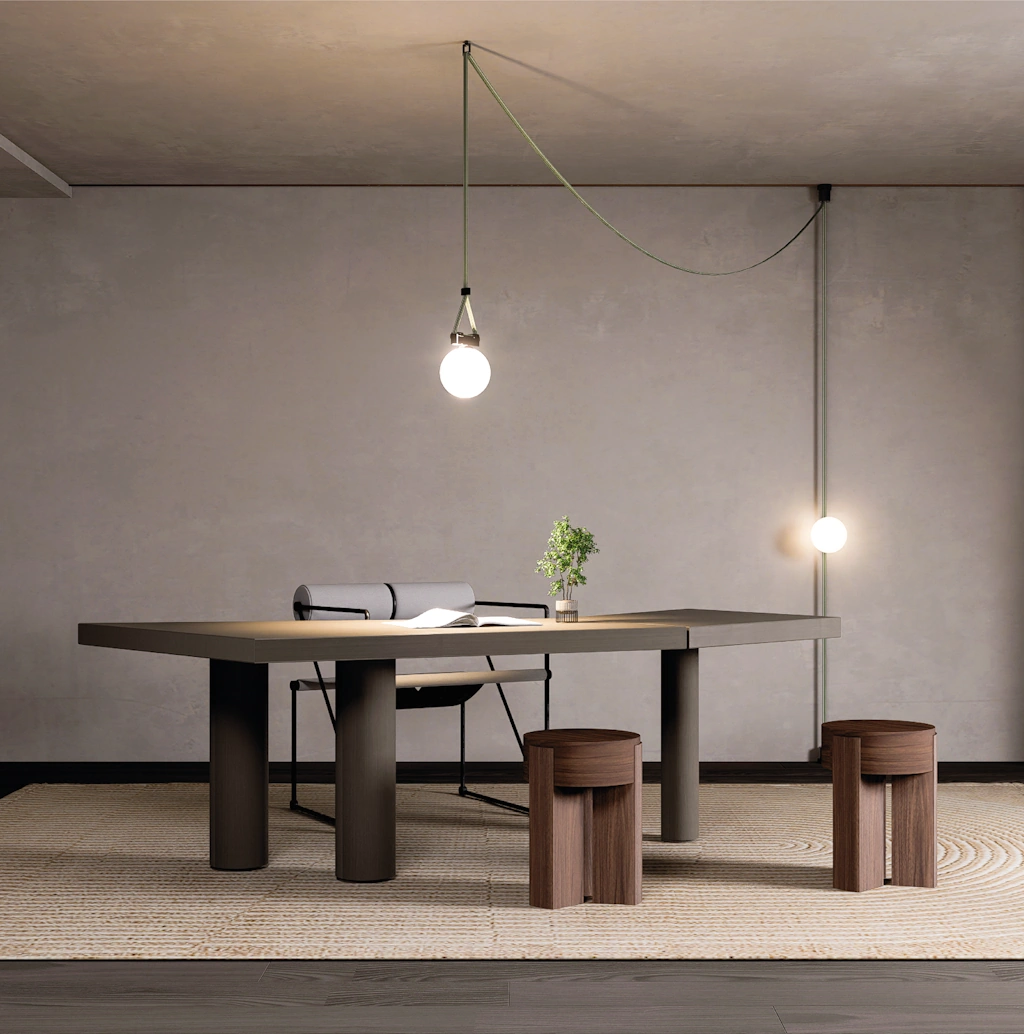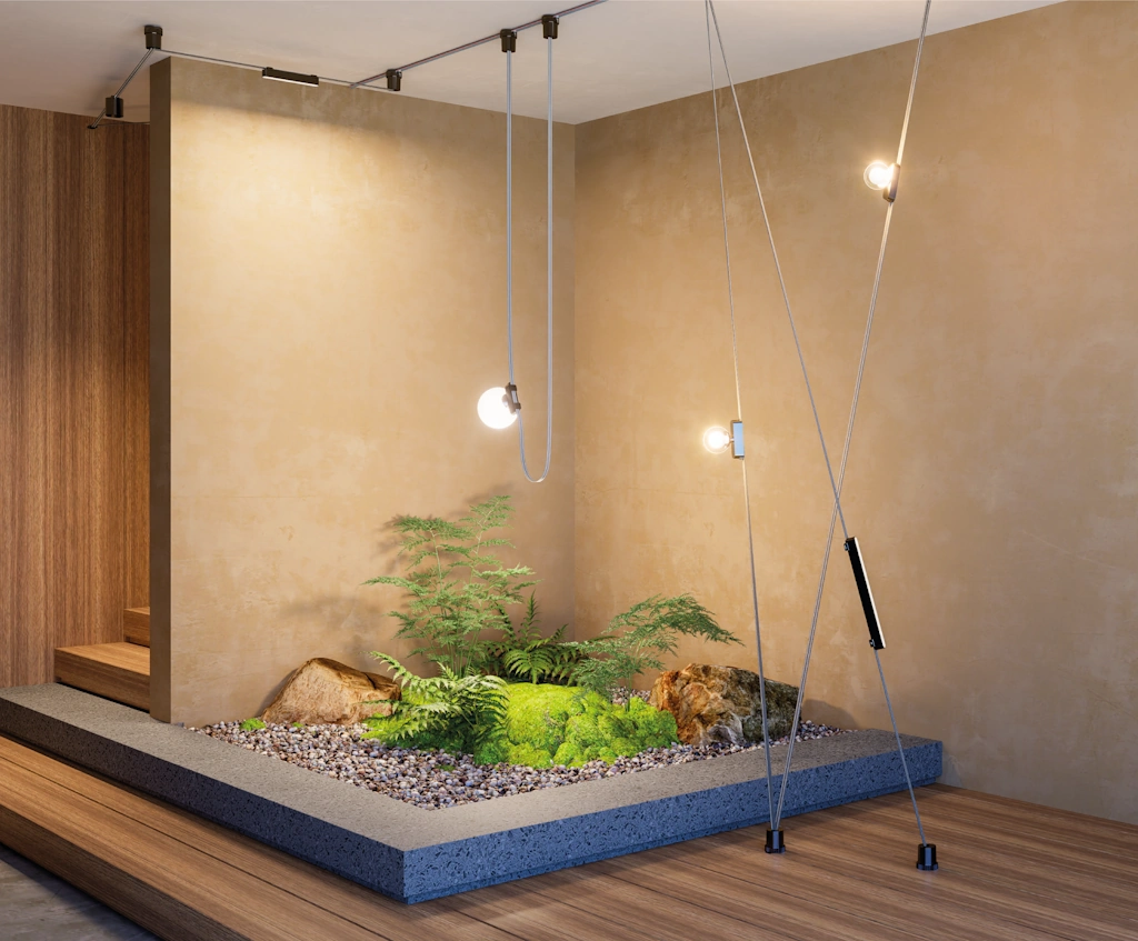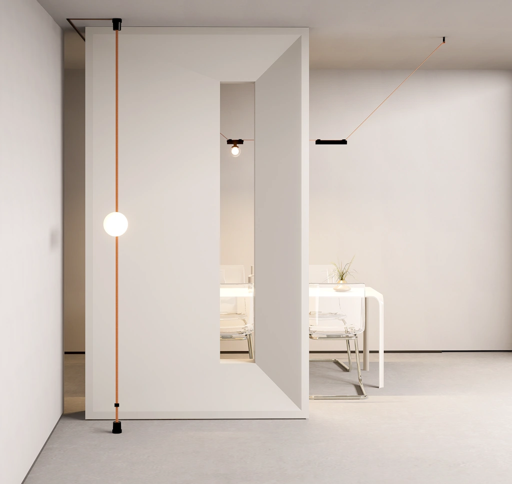 Disponible en una gran variedad de colores y luminarias, este sistema es tanto un componente decorativo como una solución de iluminación de alta tecnología.