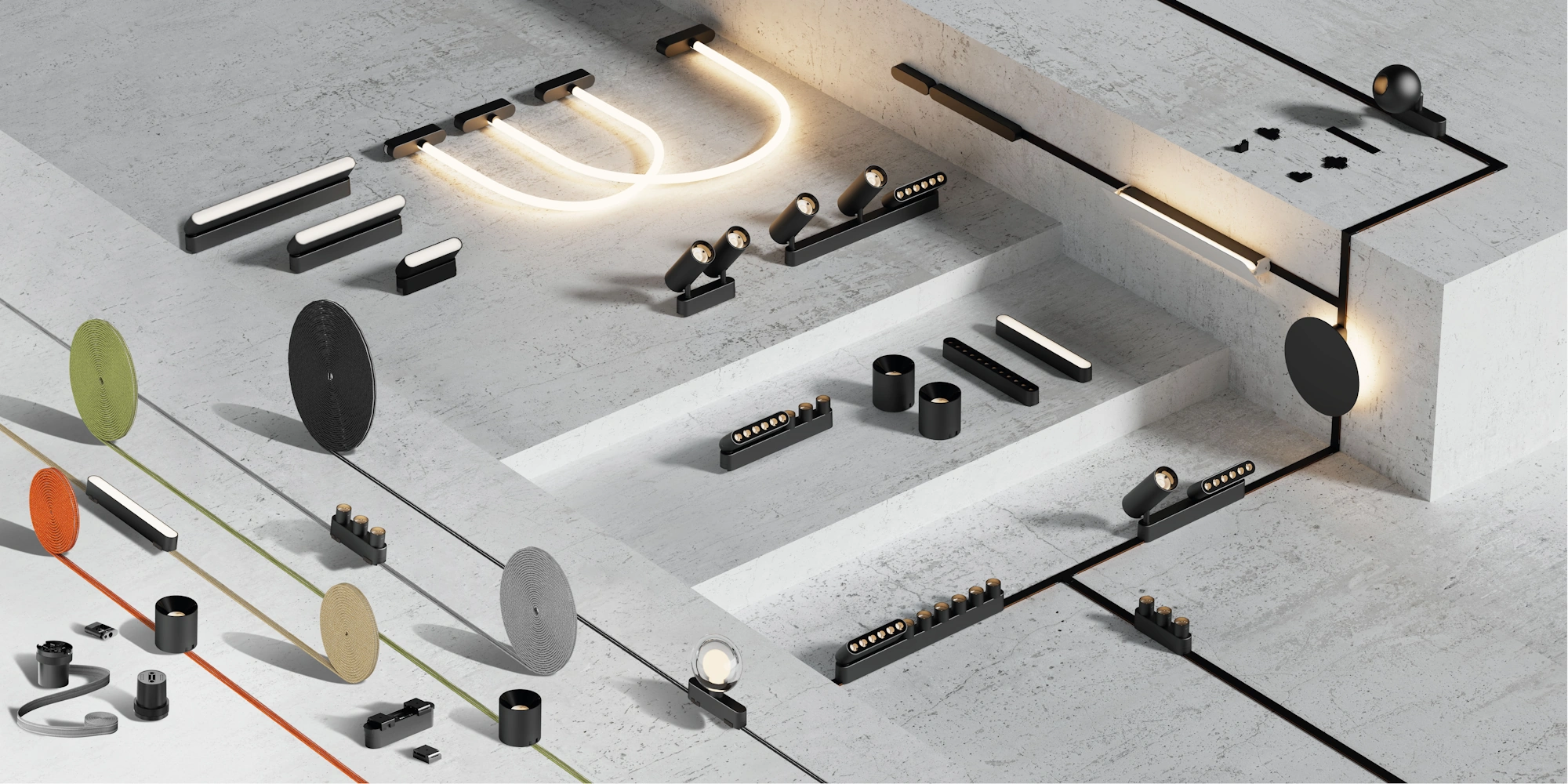 Cada elemento ha sido diseñado para que tengas total control sobre la disposición de la luz, haciéndolo ideal para quienes buscan una estética minimalista.